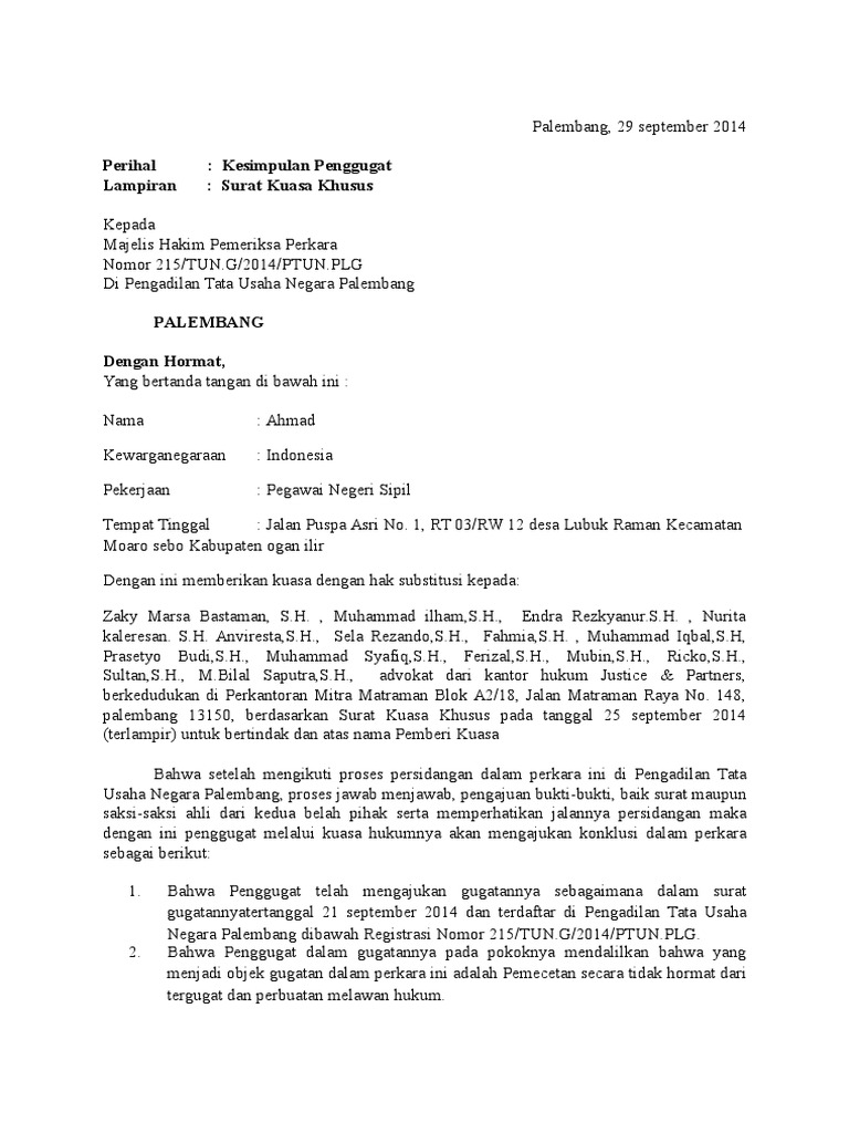Contoh Surat Kuasa Khusus Dan Gugatan Tata Usaha Negara
