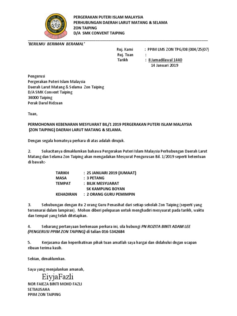 Doc Contoh Surat Panggilan Mesyuarat Adibah Aqilah Academia Edu