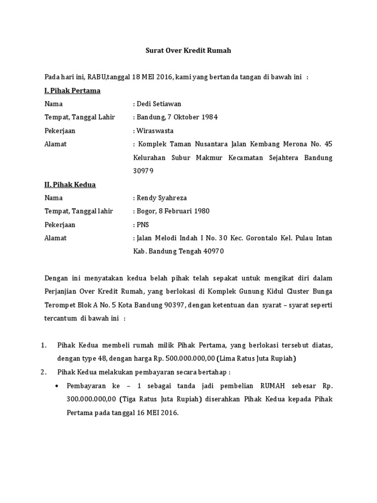 | Lihat Surat Perjanjian Over Kredit Rumah Dibawah Tangan |